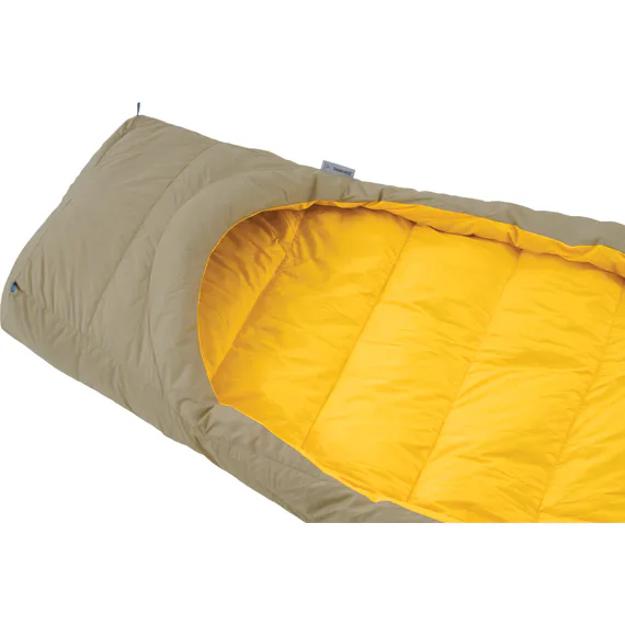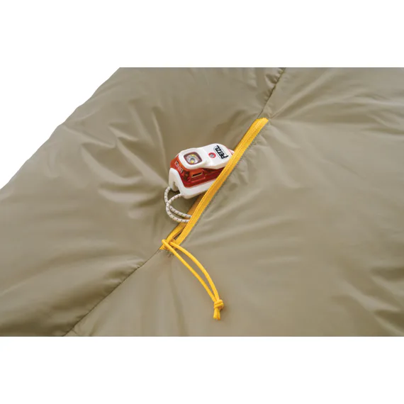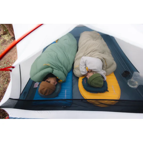 Přesně tvarovaný prostor na nohy lze navléknout přes většinu karimatek pro eliminaci průvanu, nebo jej přetáhnout přímo přes chodidla pro extra teplo.