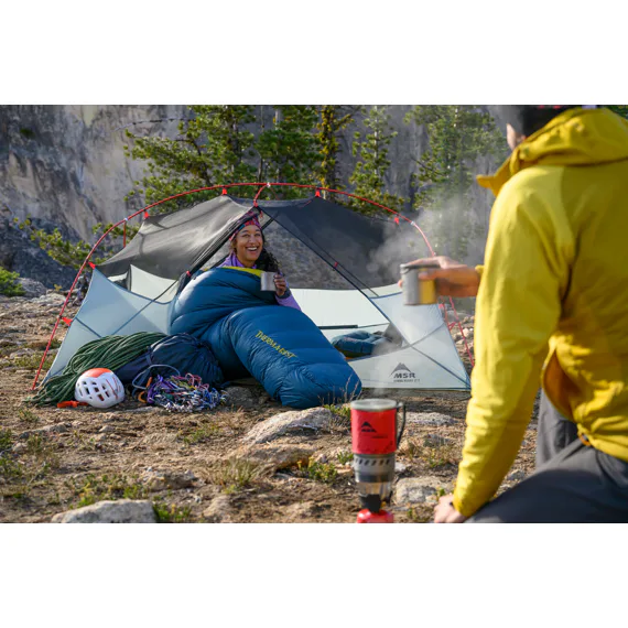 Lehký, vzdušný a s dostatkem místa, aby se dva pohodlně natáhli i na širokých „luxusních“ karimatkách.