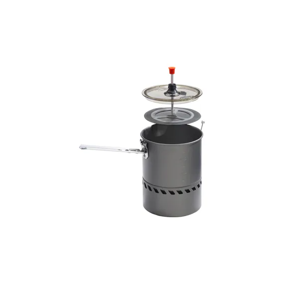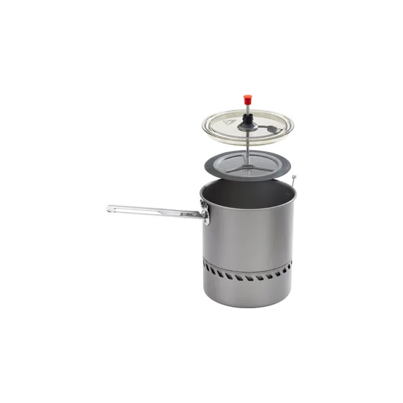 Nový turistický ruční presovač pro vařič Reactor. Prodává se ve dvou velikostech 1 l a 1,7 l. Síto je vyrobeno z nerezové oceli, je dostatečně jemné a velmi dobře se čistí. Presovač má šroubovací držadlo, složený je velmi skladný.