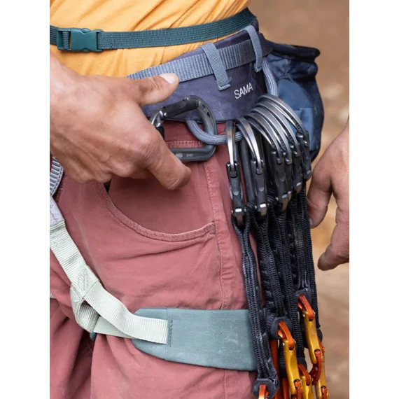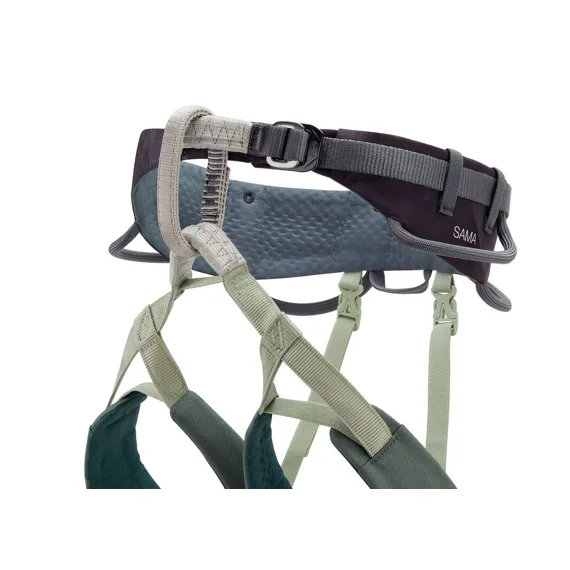 SAMA je pohodlný sedací úvazek, který se hodí jak na umělé ezecké stěny, tak do skal. Elastické nožní popruhy se přizpůsobí oblečení a pohybům, pás je pružný a zúžený na přední straně, aby poskytoval velkou velnost pohybu. Čtyři poutka na materiál poskytují dostatek prostoru pro uložení veškerého vybavení, které potřebujete.